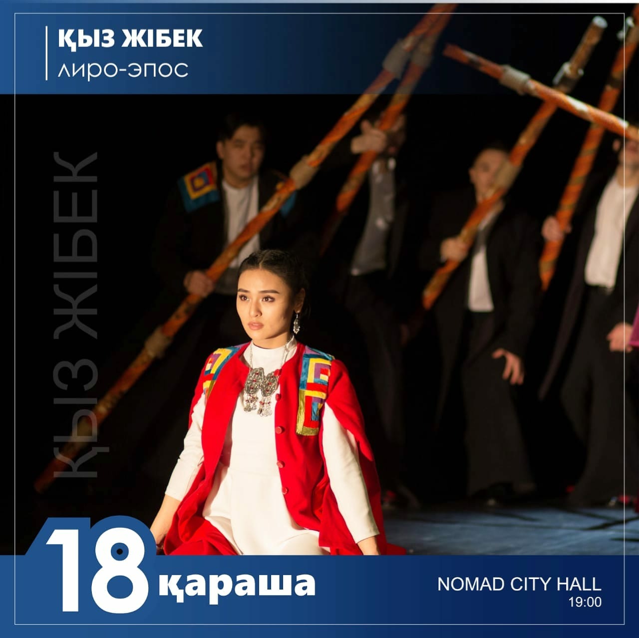 Жүсіпбек қожа Шайхисламұлының «Қыз Жібек» лиро-эпосында жырды жаңаша интерпретацияда тамашалай аласыздар. Спектакльде кейіпкерлердің ішкі күйін, жан тебіренісін, сезім иірімдеріне бұрыңғыдан тереңірек үңілуге мүмкіндік туады.