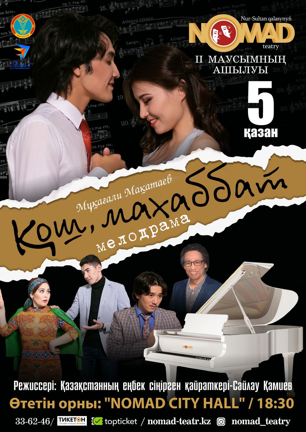 Құрметті көрермендер! Сіздерді Номад театрының ІІ маусымының ашылуына шақырамыз! 2019 жылдың 5 қазан, сағат 18:30-де М.Мақатаевтың «Қош, махаббат» мелодрамасының премьерасы өтеді!